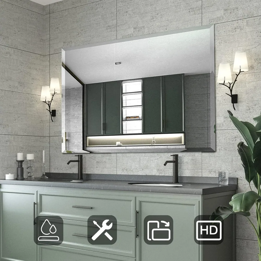 - 【MODERN & ELEGANT】Whether you need a bathroom mirror, a wall mirror, or a decorative accent piece, our classic frameless beveled mirror has you covered, with a beveled edge that adds a touch of sophistication to any room in your home.