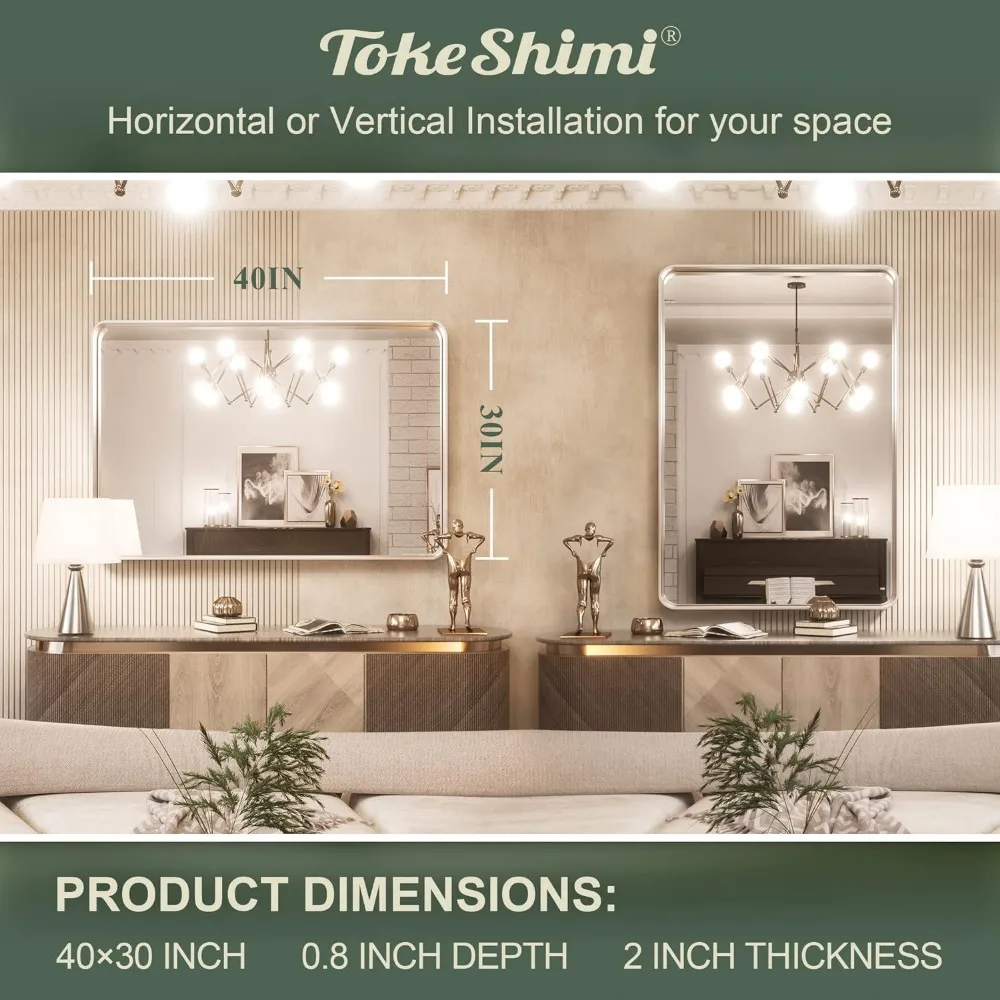 - ❥PRACTICAL AND DECORATIVE ROUNDED CORNER RECTANGLE MIRRORS: DIMENSION (40×30inch,0.8inch depth, 2inch thickness).TokeShimi black wall mirror has modern, minimalist, farmhouse and industrial style appearance which is the prefect addition to your bathroom,powder room, dining room,living room ,hall,etc. Multi-size offers(24x32,24x36,36x30,40x30,48x30,48x36,55x36,60x30,60x36,72x36,65x22).