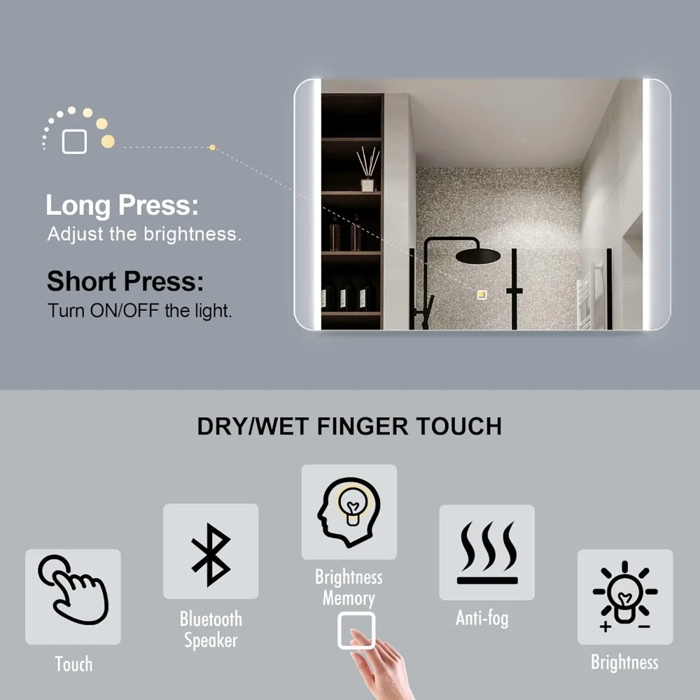- ✔INSIDE BLUETOOTH: Dual stereo 360-degree surround sound, you can enjoy the relaxing experience of listening to music while taking a bath. Just connect Mirror Bluetooth through smartphone and smart speaker.