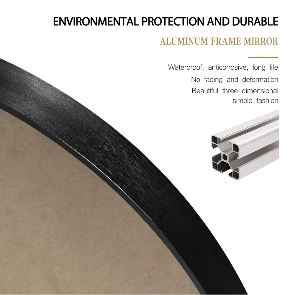 - ALUMINUM ALLOY FRAME- The aluminum alloy frame is made of metal material. The 1.6" frame thickness and 0.4" frame width can not only add to the beauty of this Large Round Mirror, but also double as a protective bumper, and this will make the wall mirror last longer.