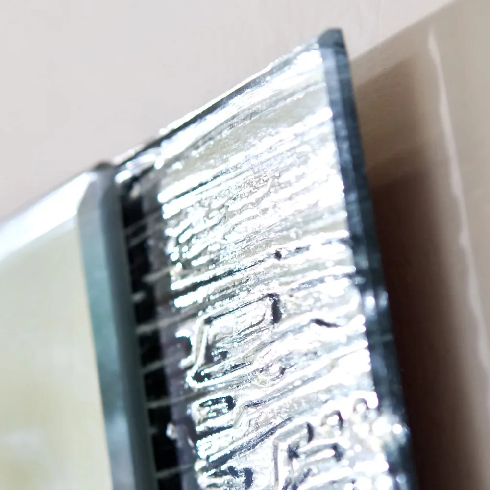 The Molten frameless bathroom mirror is a unique and intricate mirror sure to make a statement in your full or half bathroom. The top mirror is beveled and the bottom mirror is polished outside.